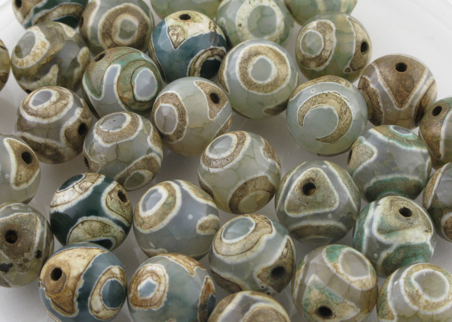 Бусина из натурального камня агат круглая, Дзи 3 глаза