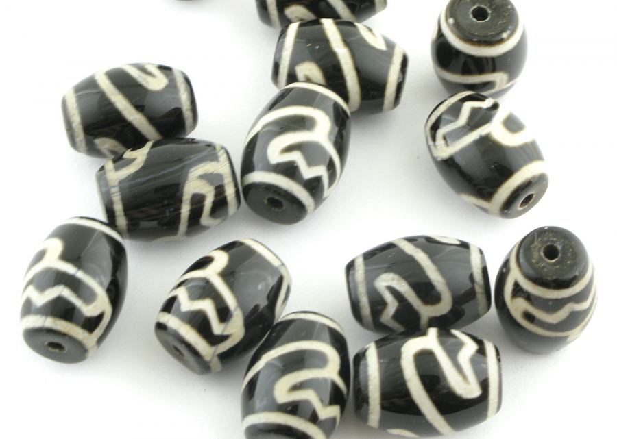Бусина из натурального камня агат в форме бочонка Дзи "Лотос"