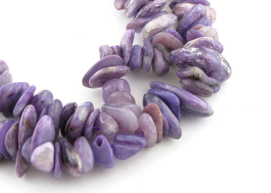Бусина из натурального камня чароит крошка-чипсы, нить 20см