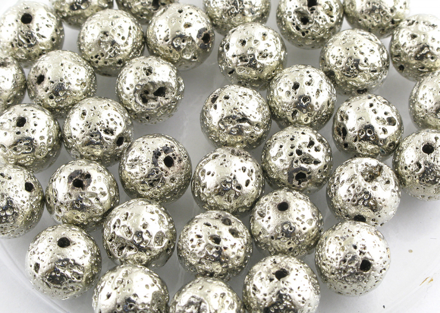 Бусина из натурального камня лава круглая пористая гальванизированная
