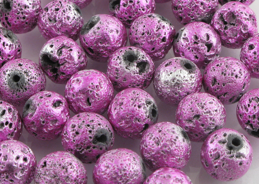 Бусина из натурального камня лава круглая пористая гальванизированная