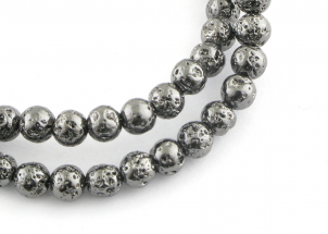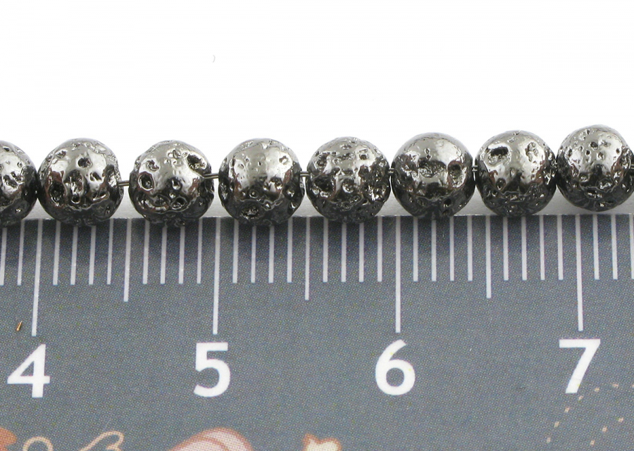Бусина из натурального камня лава круглая пористая гальванизированная, нить 39см