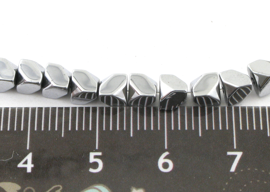 Бусина из натурального минерала гематит кубик со скошенными гранями, нить ок.19см