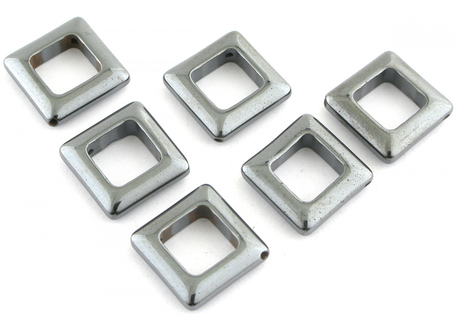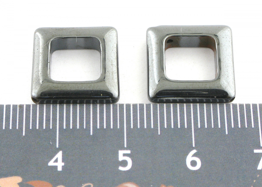Бусина из натурального минерала гематит рамка-ромб, отв. по диагонали
