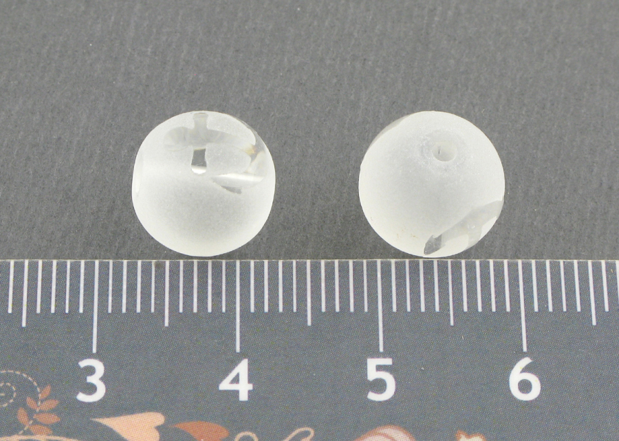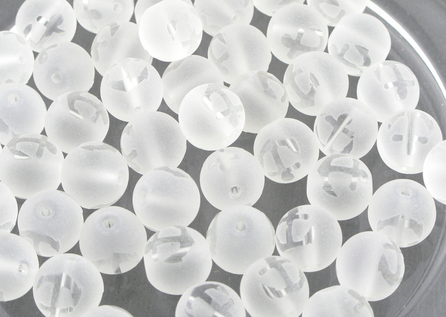 Бусина стекляная круглая матовая с рисунком "якорь"