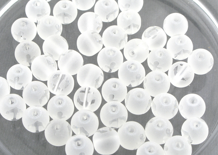Бусина стекляная круглая матовая с рисунком "якорь"