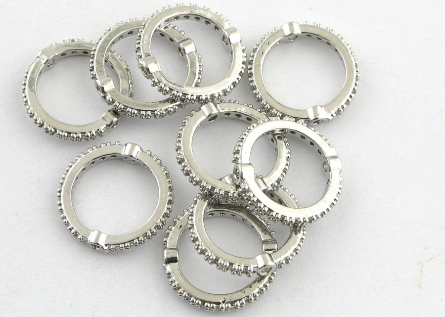 Коннектор-рамка кольцо с инкрустацией, премиум, родиевое покрытие, латунь