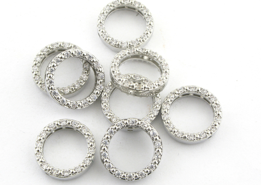 Коннектор-рамка кольцо с инкрустацией, премиум, родиевое покрытие, латунь
