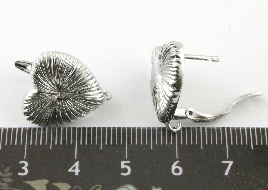 Основы для серег (швензы) Сердце с анг.замком Премиум, латунь с покрытием, родий