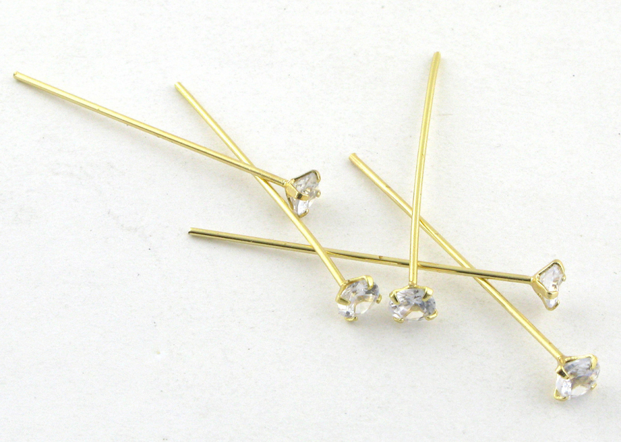 Пин со шляпкой в виде страза Премиум 14К позолота, латунь