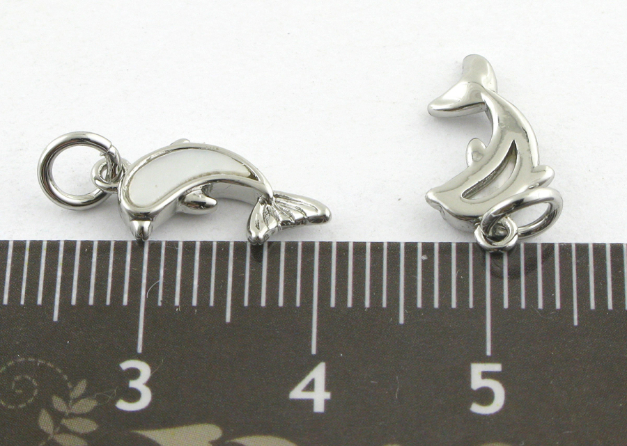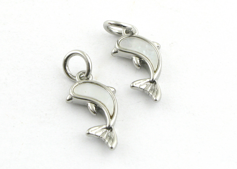 Подвеска Дельфин с перламутром, Премиум, родиевое покрытие, латунь