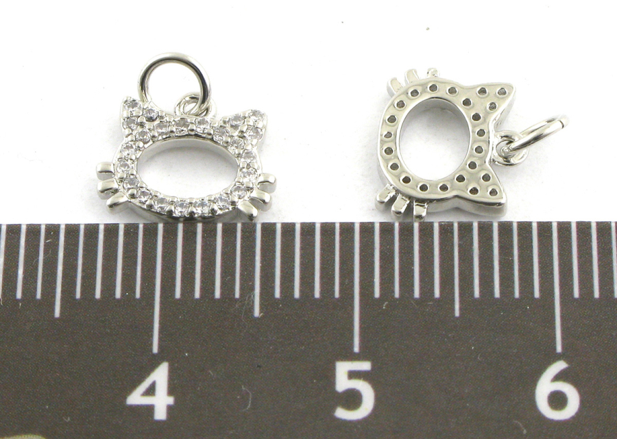 Подвеска Кошка с инкрустацией, Премиум, родиевое покрытие, латунь