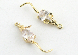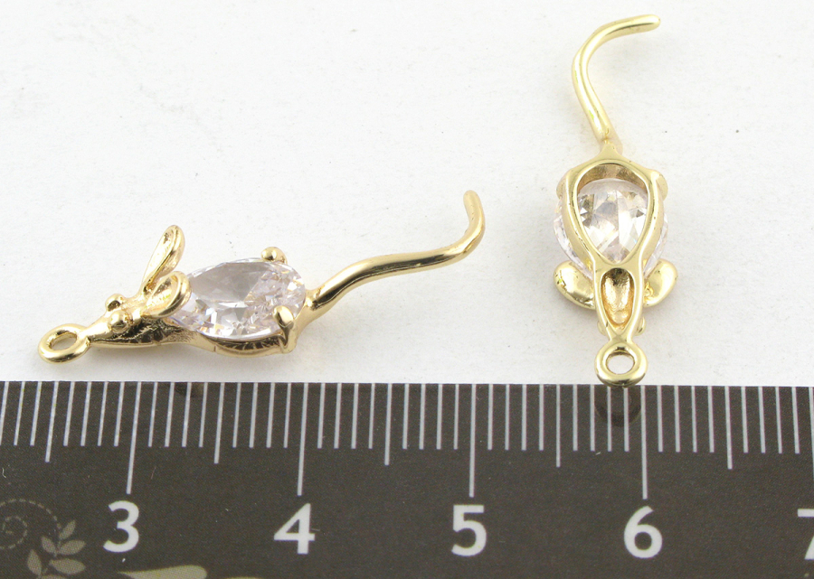 Подвеска Мышь со стразом, Премиум, 18К позолота, латунь