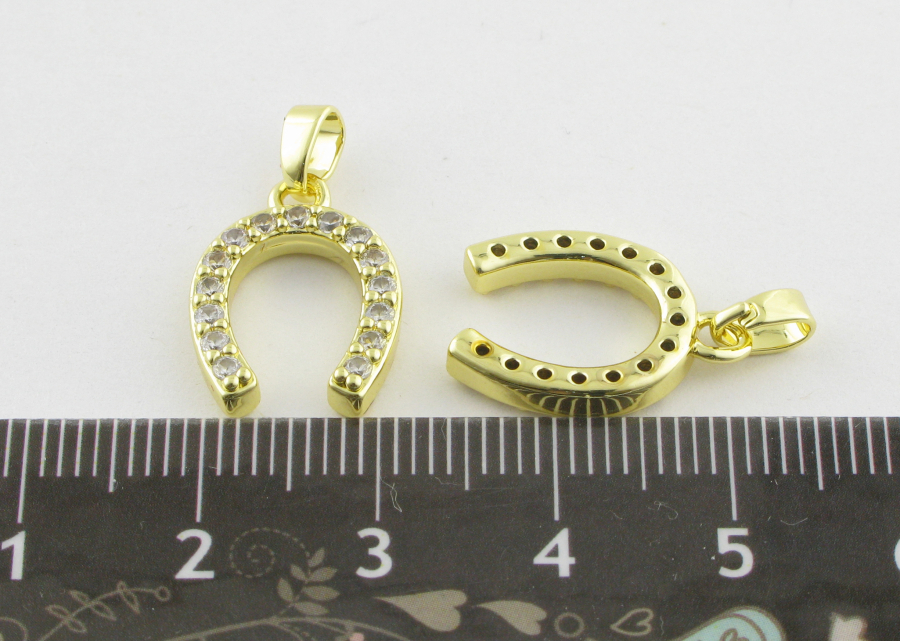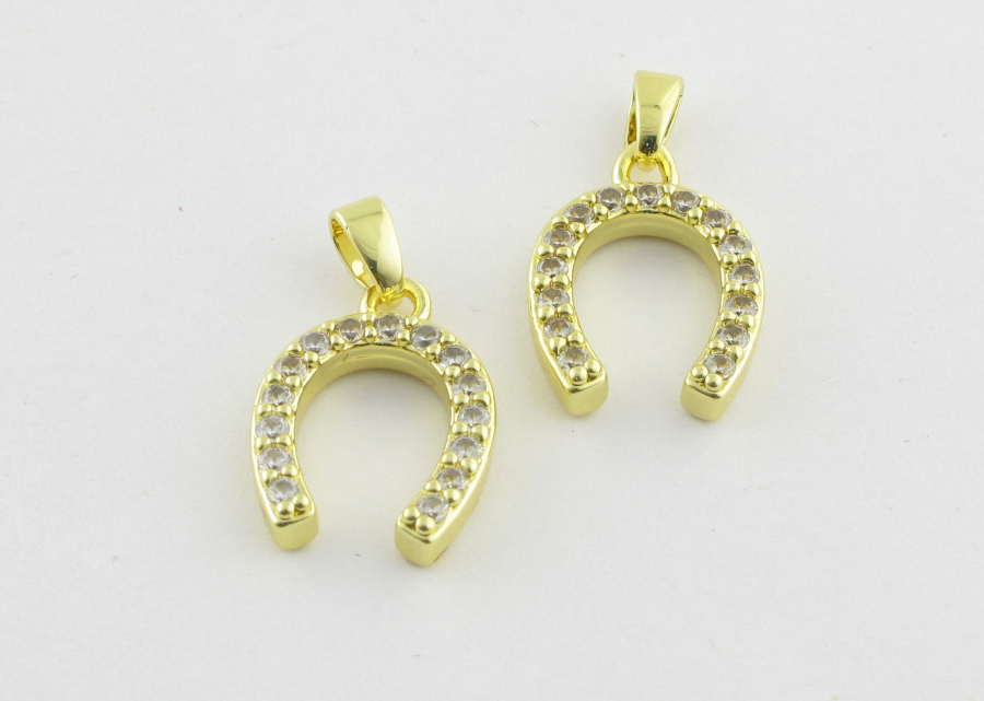 Подвеска Подкова со стразами, латунь с покрытием, с бейлом