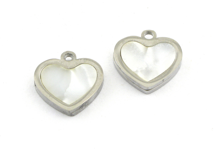 Подвеска Сердце с перламутром, нержавеющая сталь