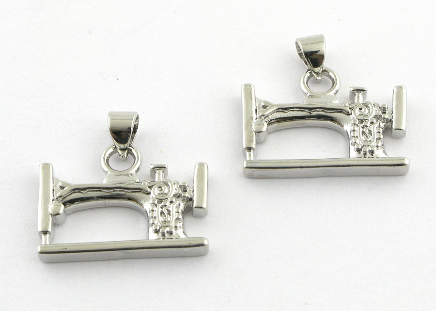 Подвеска Швейная машинка, Премиум, латунь, родиевое покрытие
