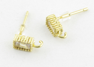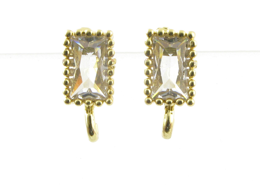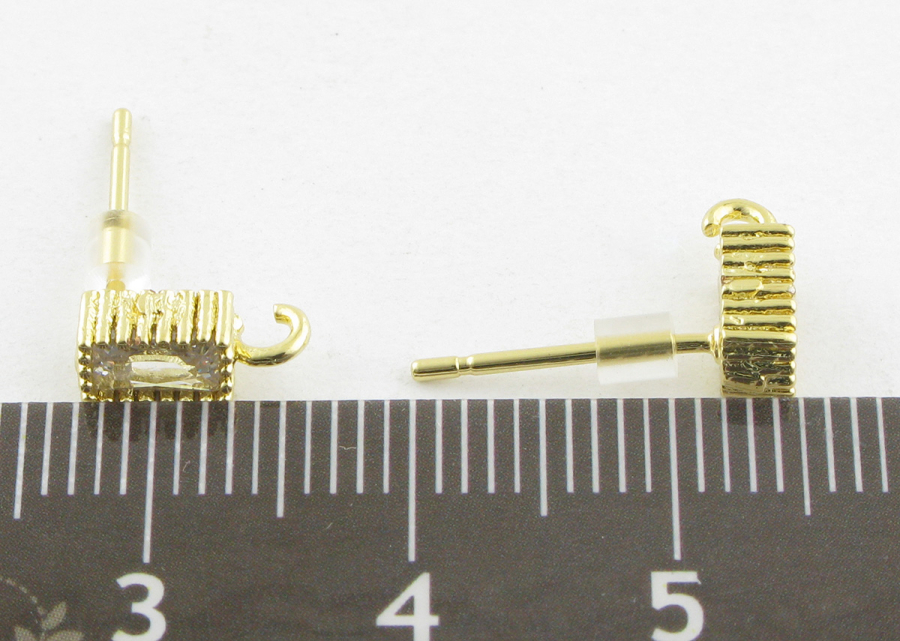 Пусеты Прямоугольник с кристаллом, Премиум, 18К позолота, латунь