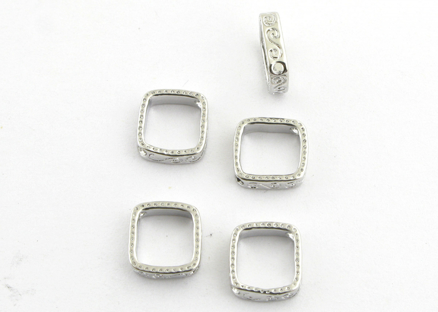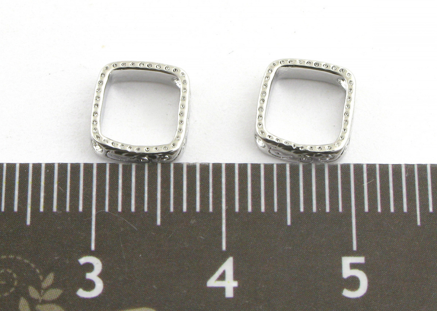 Рамка для бусин Ромб, с инкрустацией, Премиум, родиевое покрытие, латунь