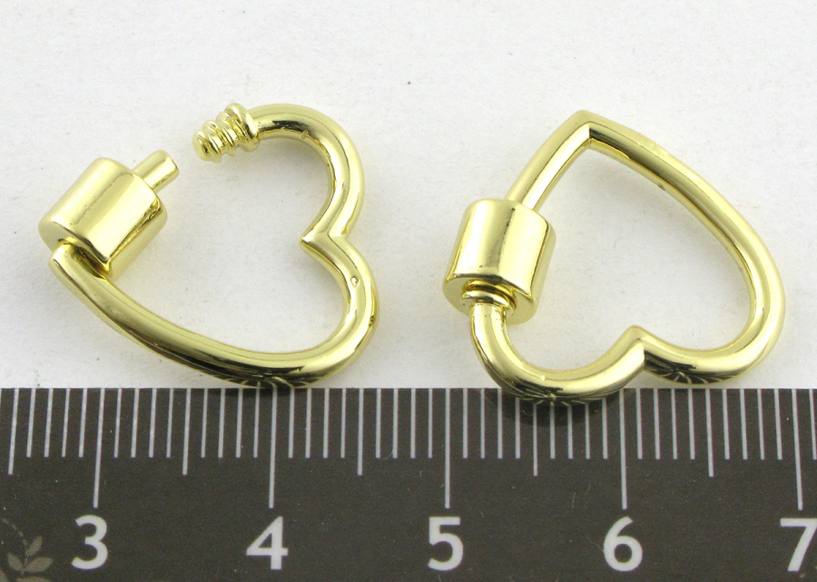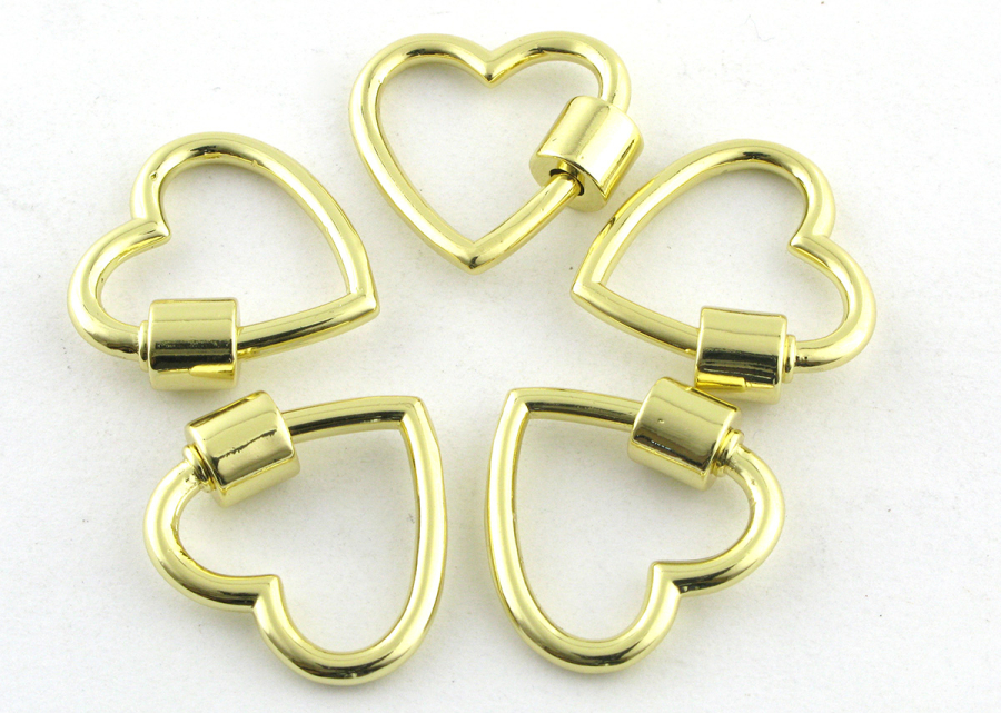 Замок-карабин в форме сердца с винтовой застежкой латунь Премиум 18К позолота