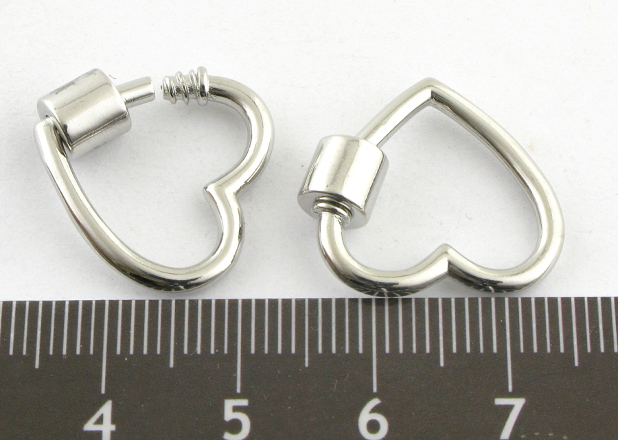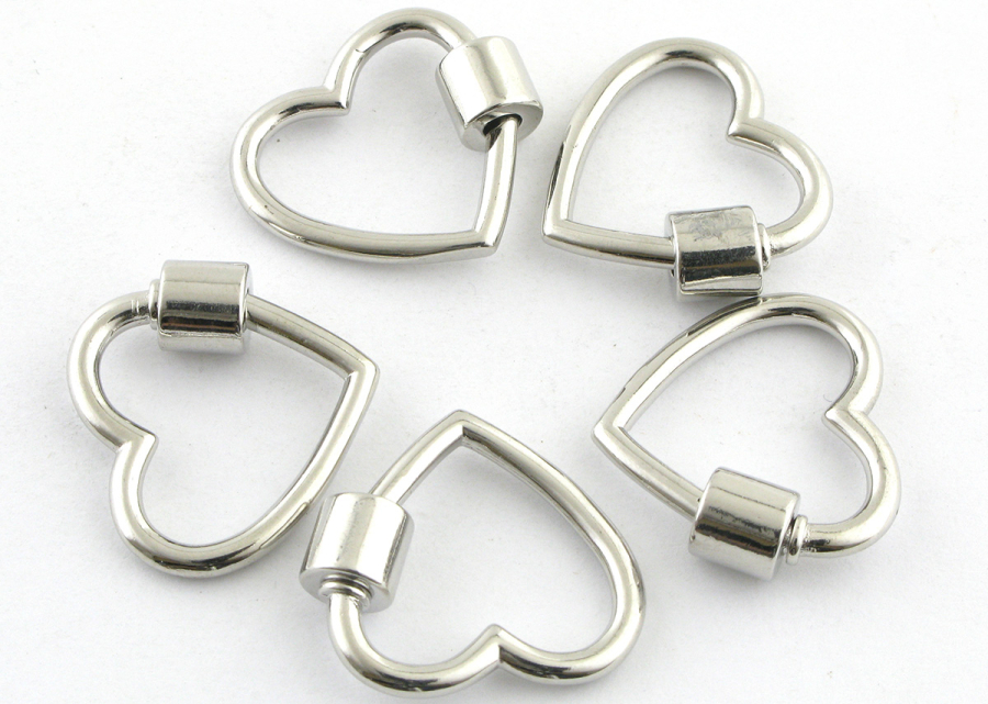 Замок-карабин в форме сердца с винтовой застежкой латунь Премиум родиевое покрытие